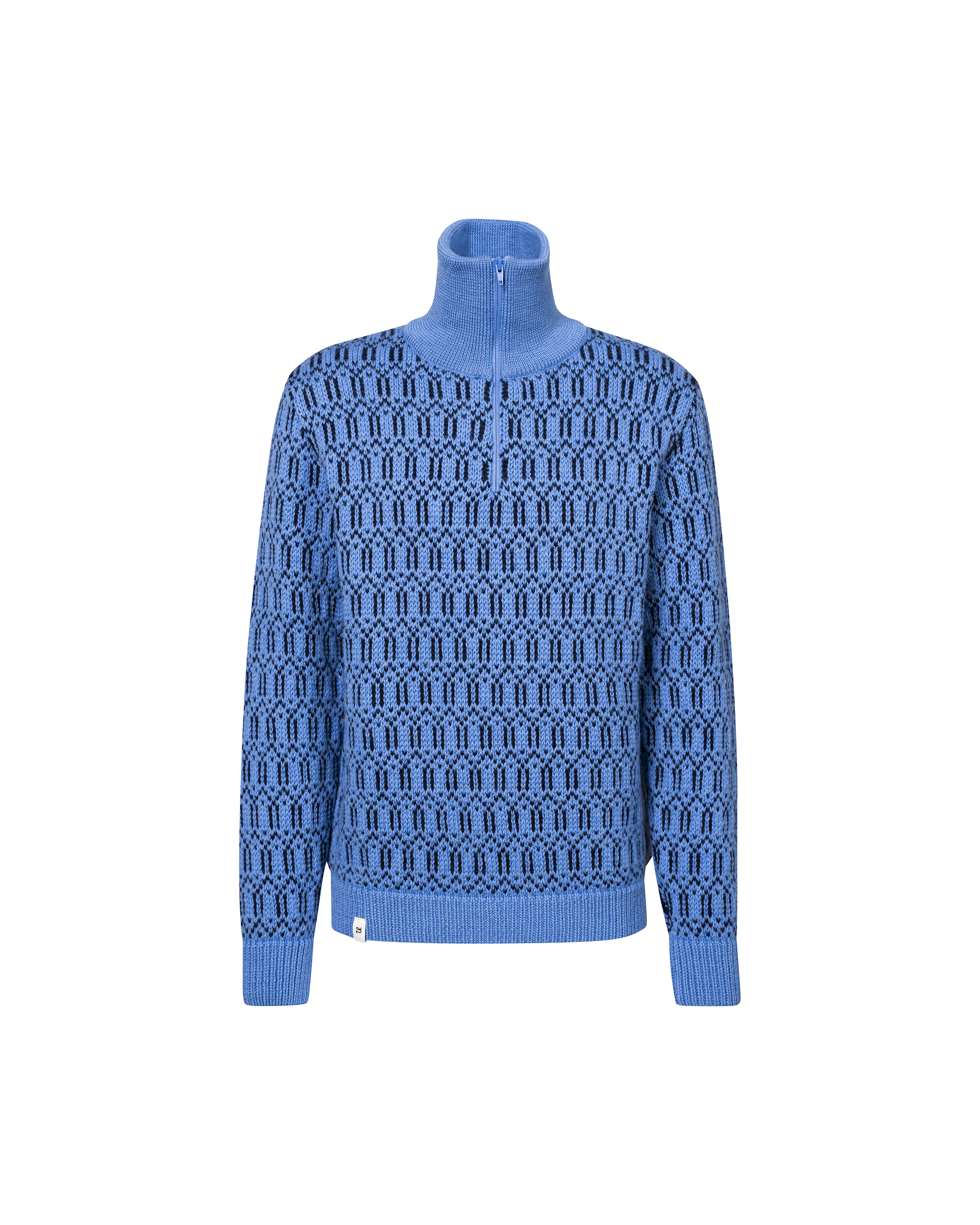 Vi henter inspirasjon fra Ulvangs arkiver med dette vintage-mønsteret, som hyller arv og tradisjon. En ullgenser av høy kvalitet i vår klassiske halvglidelåsmodell, laget av robust 100 % norsk ull.